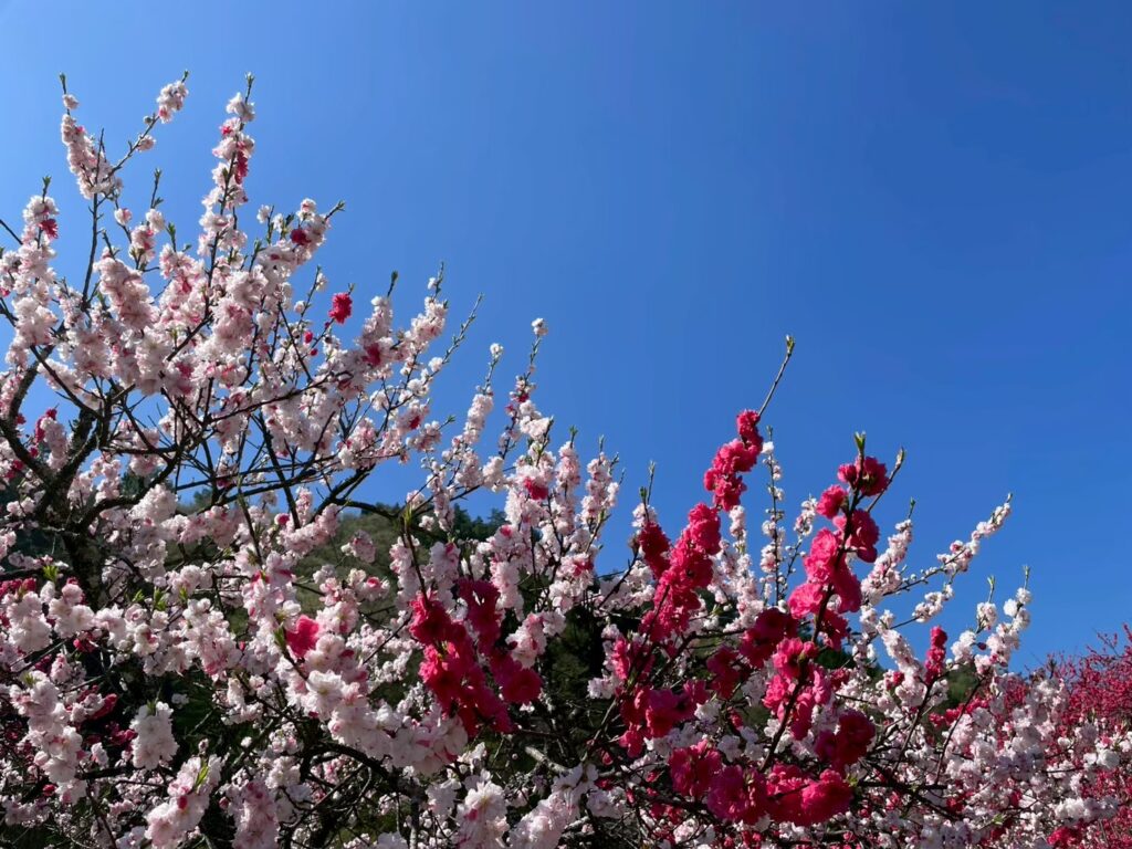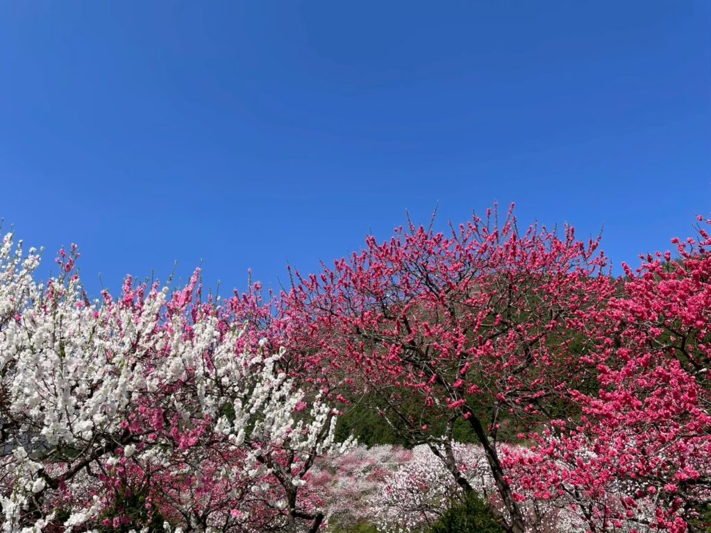 三色の花桃がつくる“グラデーション”はまるで桃源郷!