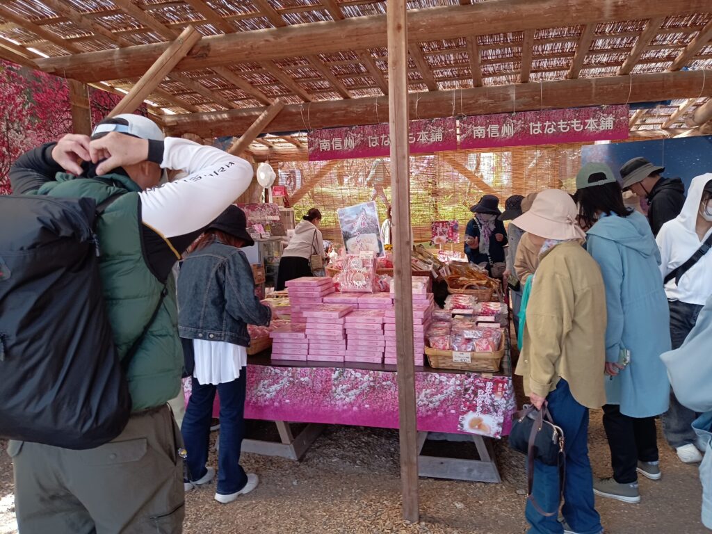花桃をイメージしたお菓子などのお土産の店も賑わっていました。