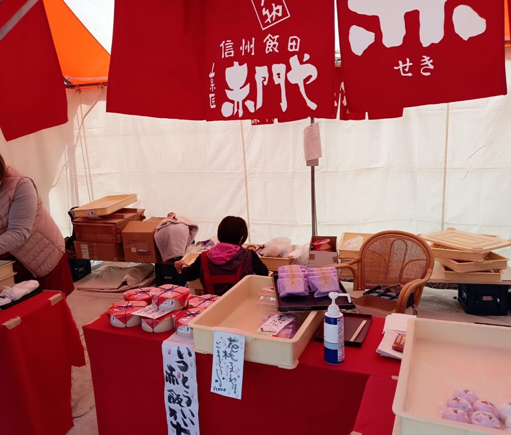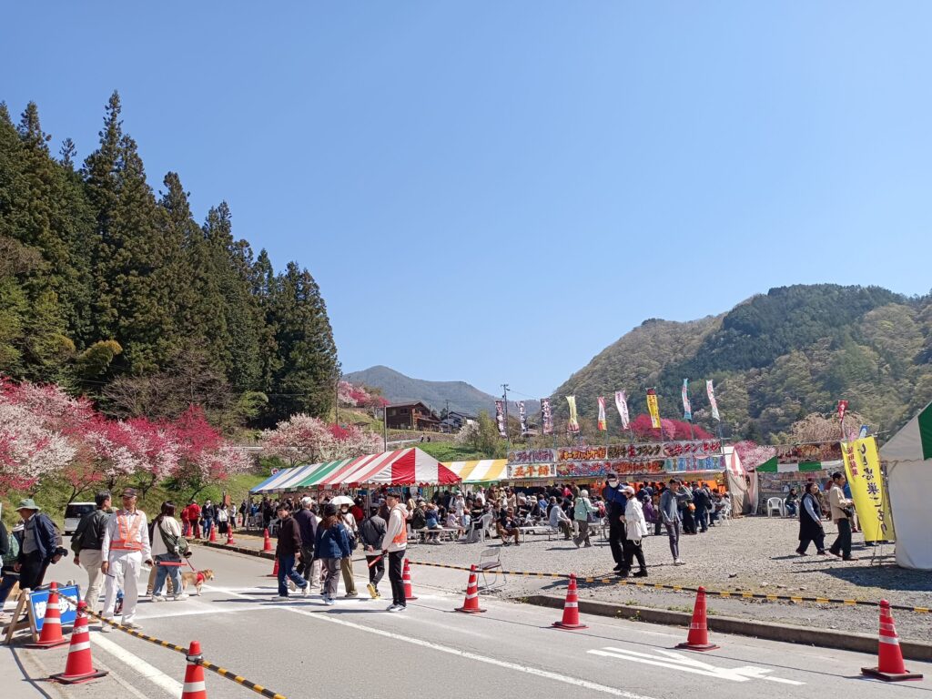 会場周辺には地元の特産品を扱う屋台や売店が並び、五平餅や山菜料理など、信州らしい味も楽しめます。