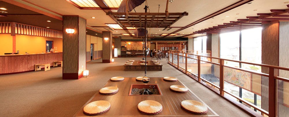 囲炉裏をモチーフとした落ち着いた雰囲気のロビーが落ち着きます。
