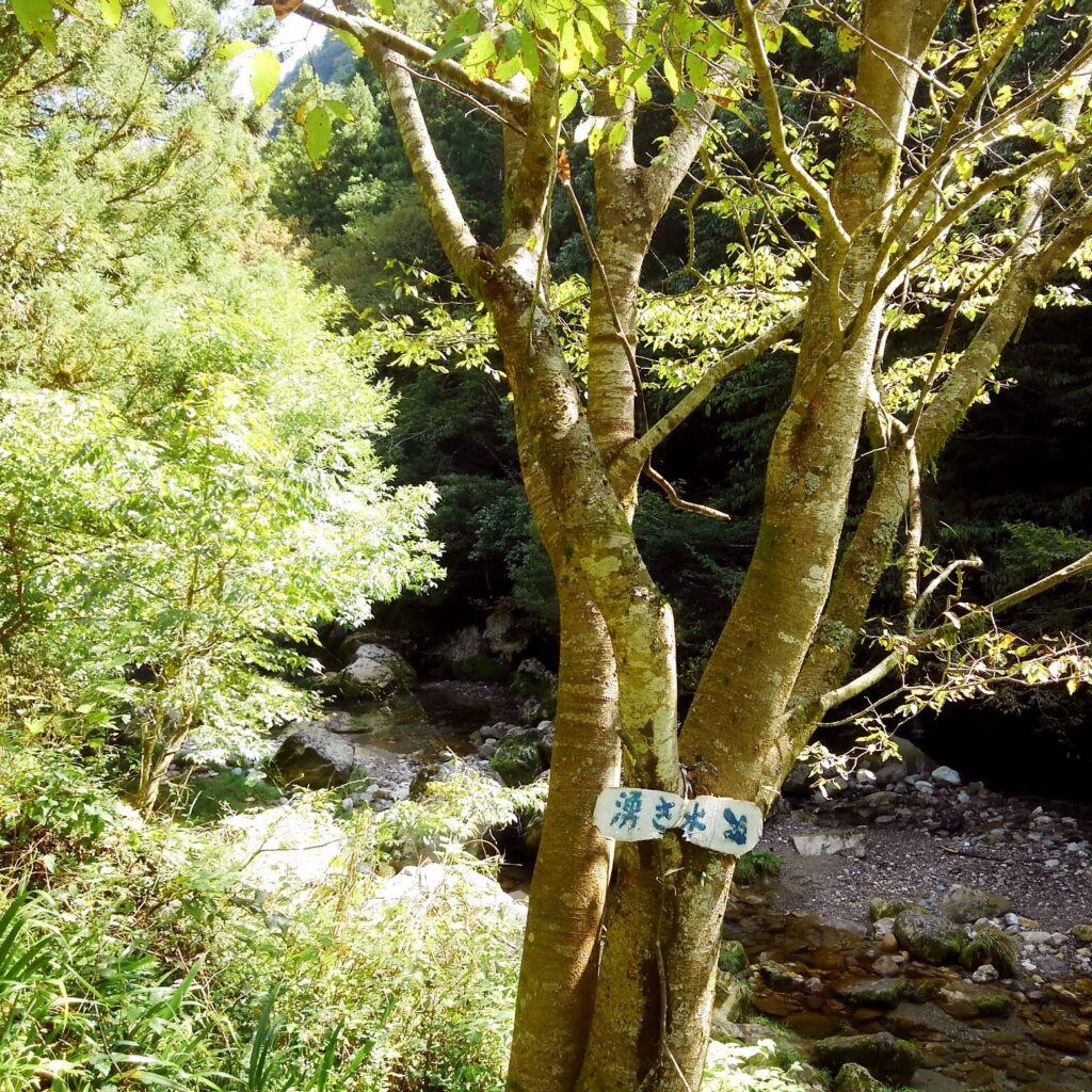 駐車場から川へ向かって歩いて行くと、「湧き水」の看板がありました。
