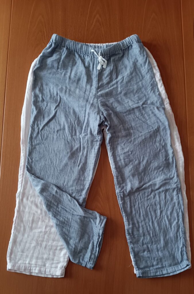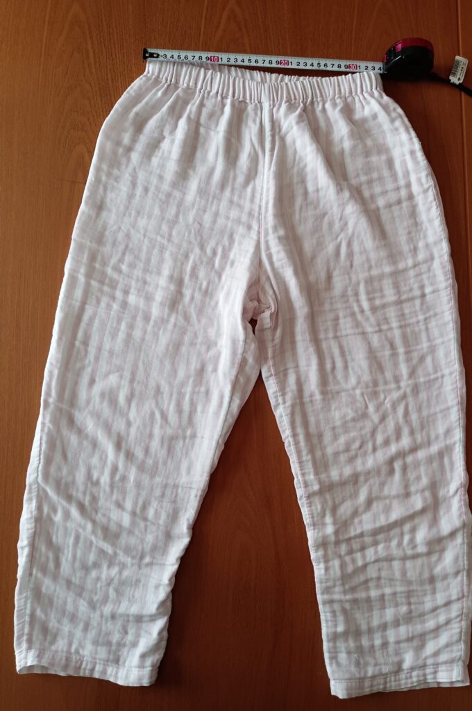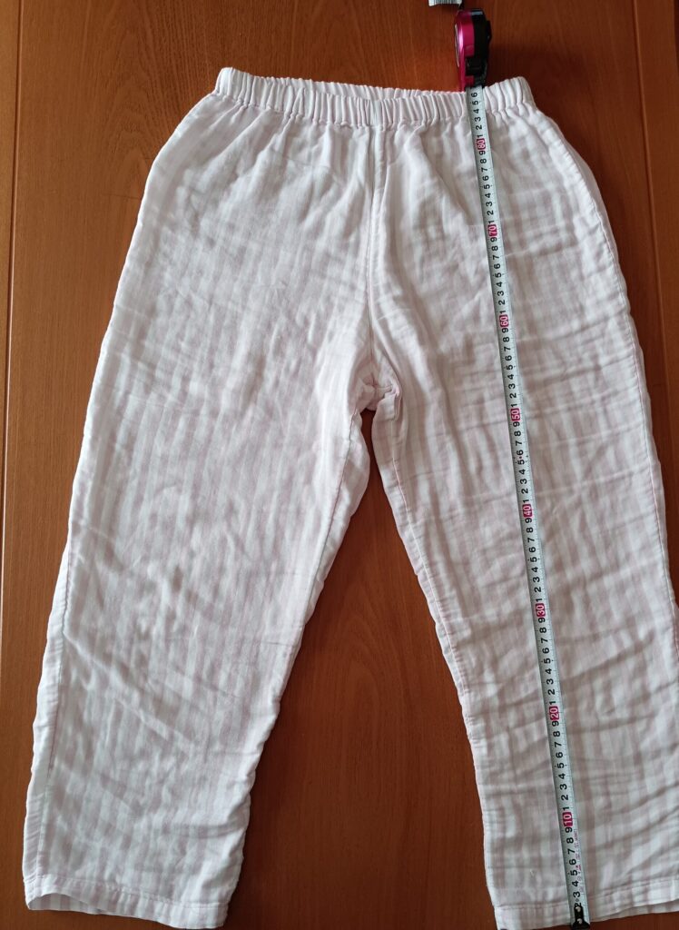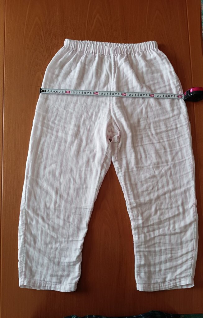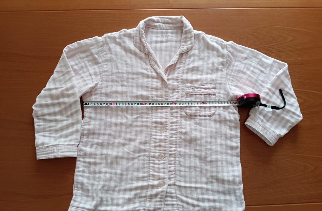 以下の写真は、夏用の「雲ごこちガーゼパジャマ」と比較してみたところ、通年用(長袖)のものより夏用のほうが少し細めに作られていました。
