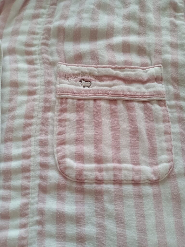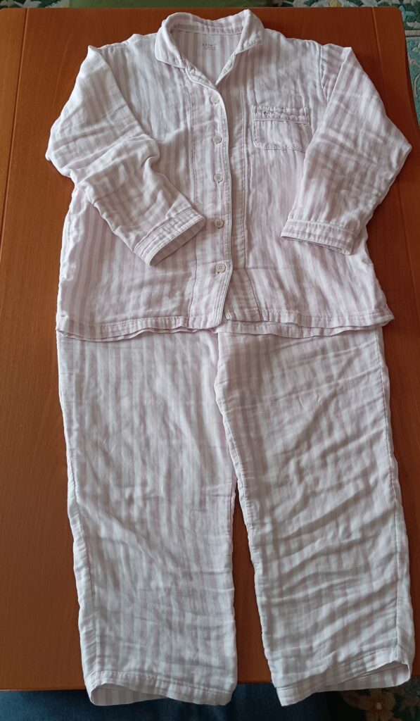 上の写真のピンク・ストライプのパジャマは私が4年以上来ている物なので、色があせていますが、洗うたびに生地がふんわり、着るほどになじむやわらかさがお気に入りです♪