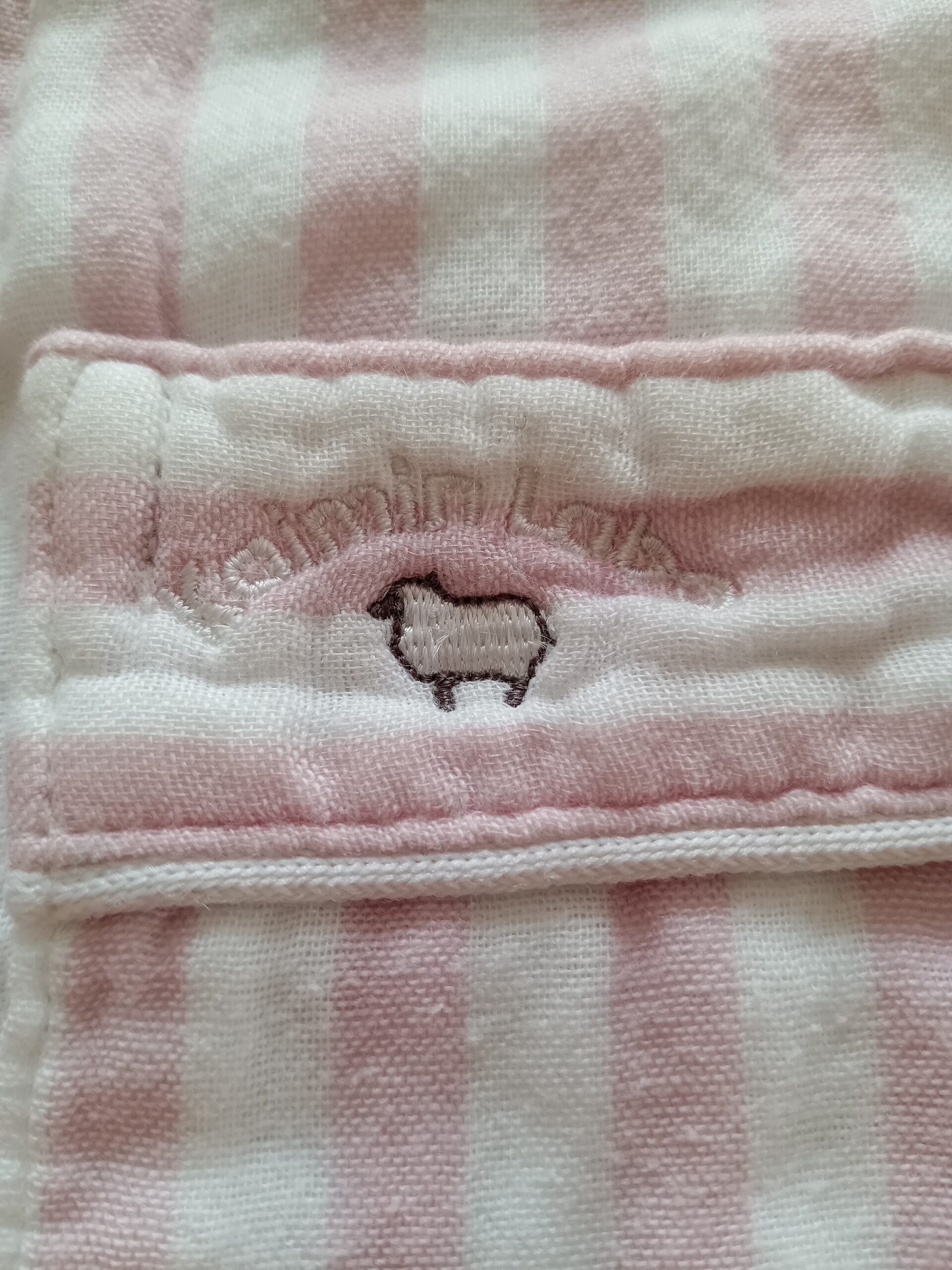 上の写真のピンク・ストライプのパジャマは私が4年以上来ている物なので、色があせていますが、洗うたびに生地がふんわり、着るほどになじむやわらかさがお気に入りです♪