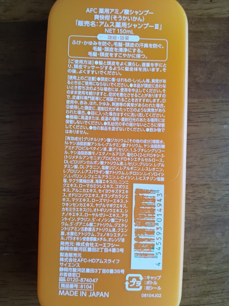 そして、どのシャンプーが良いのか悩んでいたところ、薬用アミノ酸シャンプー「爽快柑シャンプー」を見つけました!